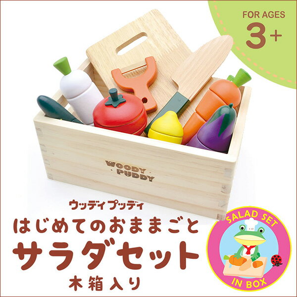 【安心の正規品】マグネット式 木製 ままごと サラダセット(木箱入り)木製 天然木 ままごと おままごと グッズ 野菜 ナイフ まな板 フルーツ おもちゃ オモチャ かわいい 子供用 キッズ